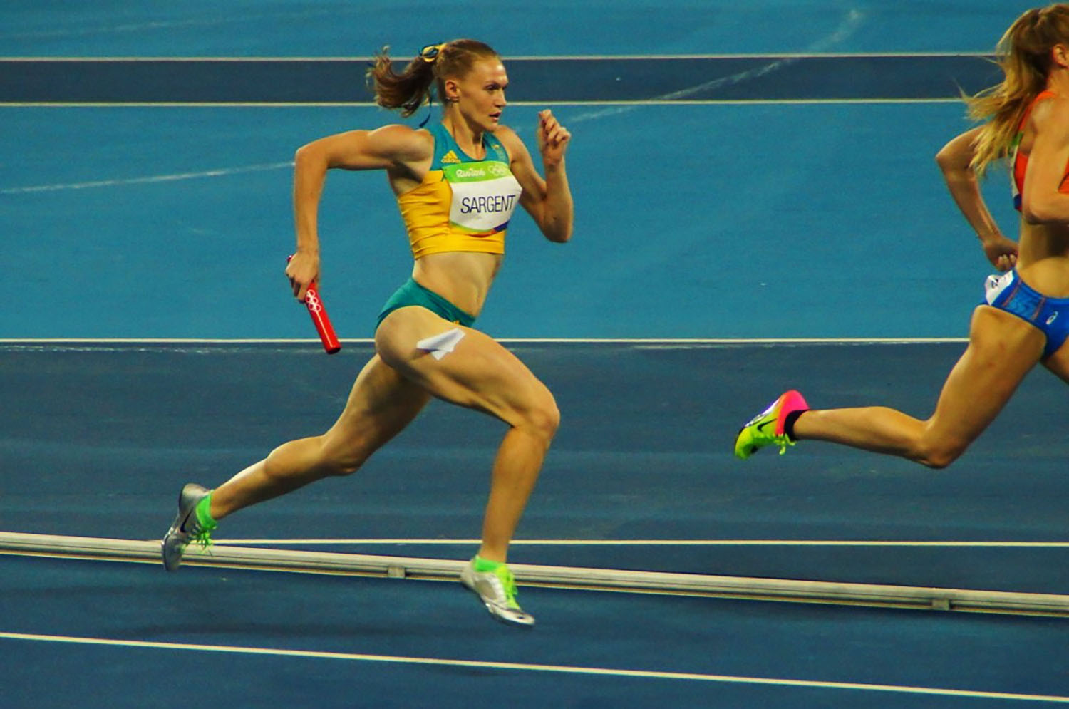 Olympic sprinter Caitlin Sargent-Jones competes for Australia in the 4x400m women’s relay at the 2016 Rio Olympics.